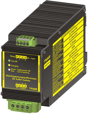 Das Puffermodul speichert Energie (solange die Spannungsversorgung zur Verfügung steht) in Kondensatoren zwischen, um sie bei Ausfall der Netzspannung, geregelt an den Verbraucher wieder abzugeben.